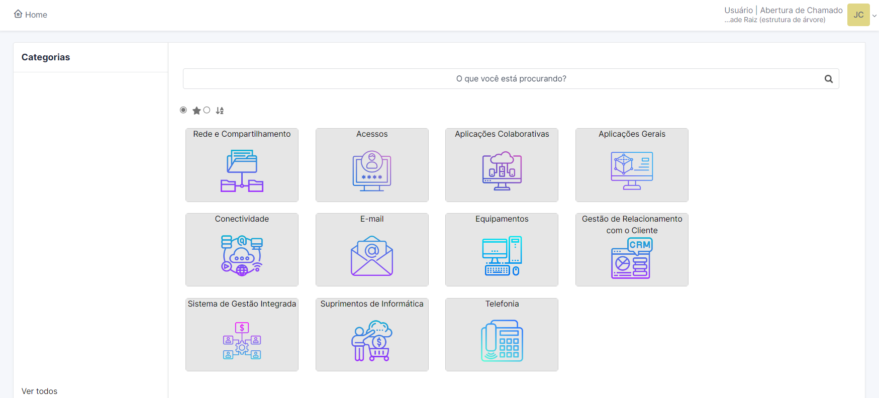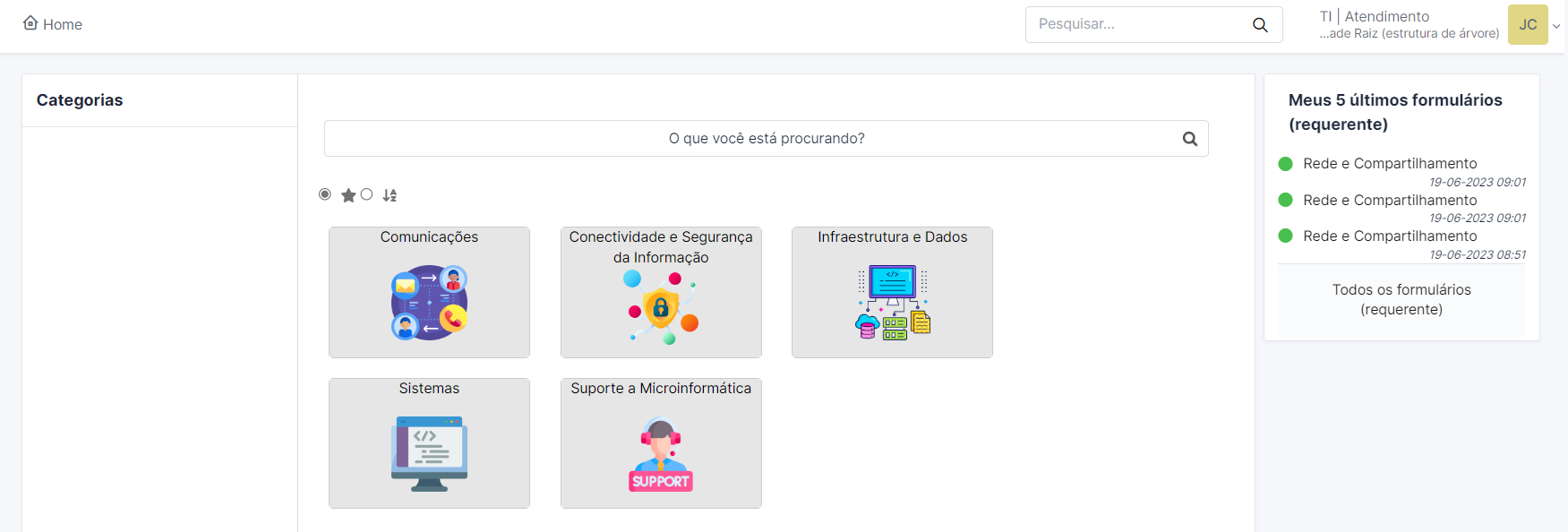 Uma vez entendido quais são os serviços prestados, definidos quais são as categorias de serviços que serão utilizadas para medição, seguimos para a exibição desses dados em nossa plataforma. Aqui o GLPI vai lhe permitir criar uma visão para cada cliente, com base no consumo do catálogo de serviços, seja ele somente para cargos ou departamentos distintos.
