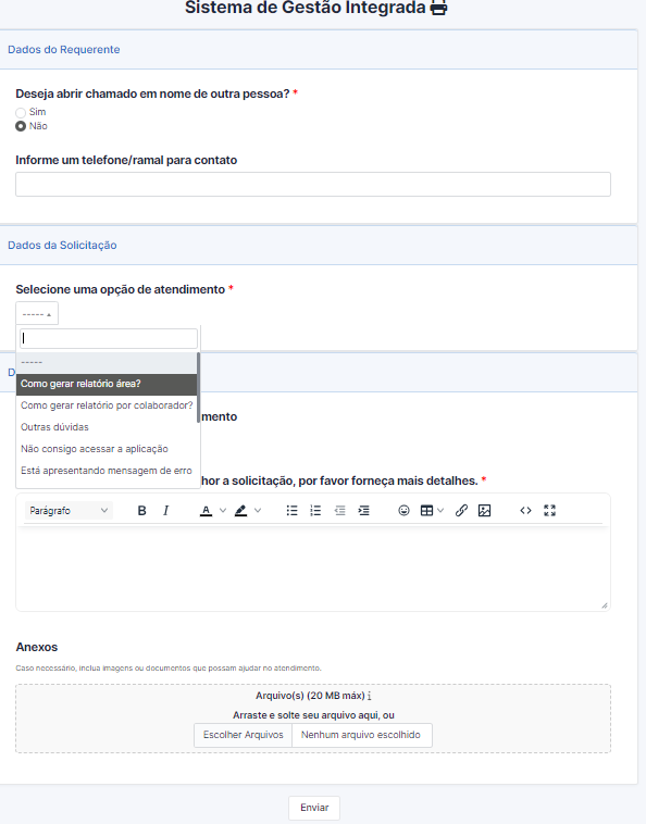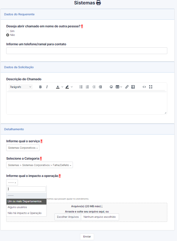 Ao final do preenchimento do formulário, tanto o do cliente, quanto o do técnico irão abrir o mesmo chamado, com a mesma categorização - Sistemas > Sistemas Corporativos > Falha/Defeito, mas então você vai questionar, "Como vou saber qual o Sistema Corporativo está relacionado ao chamado?" - Muito boa pergunta, para isso, caso você tenha a relação dos Sistemas cadastrados no GLPI, é possível vincular ao chamado, e então poderá estratificar a quantidade de chamados nessa determinada categoria para um determinado sistema.