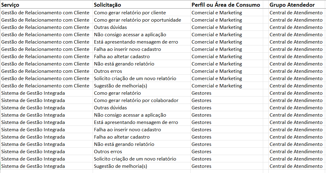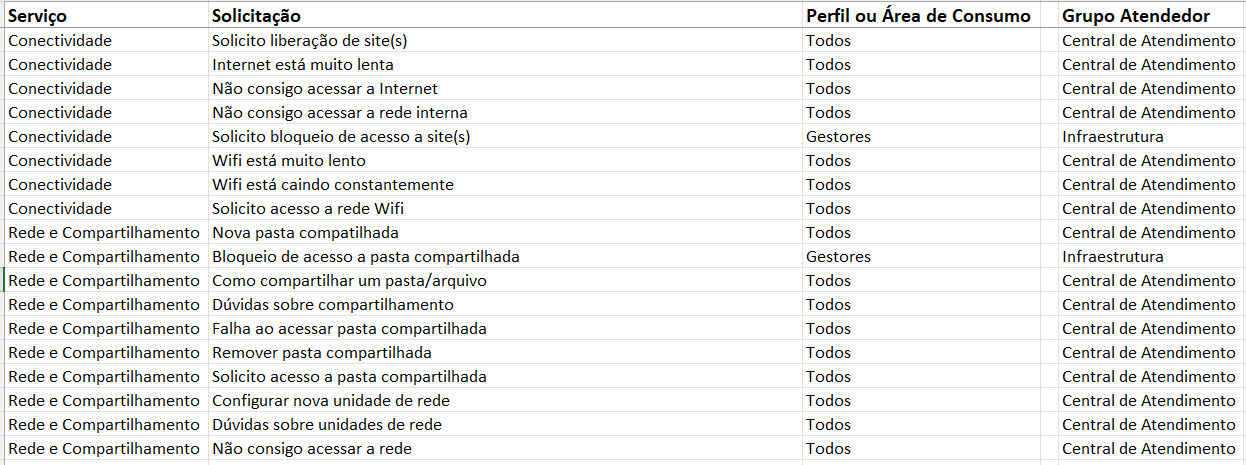 Rede e Conectividade - Mesmo na apresentação, havendo solicitações que são notoriamente de outros serviços, como o caso de liberação de acesso a site(s) do serviço anterior, essa é a visão do cliente, não se preocupe, amarraremos tudo com as regras de automação.